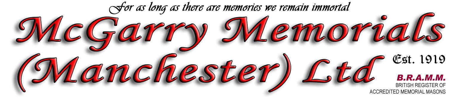 At McGarry Memorials (Manchester) LTD Moston Lane, Moston our aim is quite simply to provide you with a memorial of the highest quality and value for money along with excellent service. As a family owned company EST Since 1919 we are dedicated to ensuring excellent quality and value for money. All New Memorials are fitted to the NAMM Code of Working Practice by our own BRAMM accredited fixing Masons.