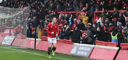 Easy one this, the last minute winner at Lancaster definitely, that’s up there as one of my best experiences in football ever, unbelievable, I can just remember Jack (Lenehan) crossing the ball in and I got my head on it then it went into the net in slow motion, then the fans just erupted, aaah it was amazing, it gives me shivers just thinking about it. If we’re ever in need of a goal with ten minutes to go then I’ll always be looking over to the bench to get up there. I used to play up front as a striker when I was younger so I’m not shy and would go up there if needed to.