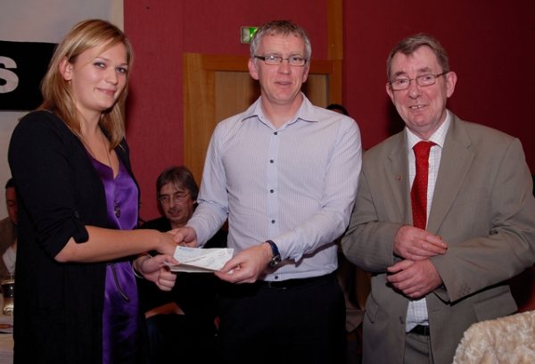 At the end of the evening FC United General Manager, Andy Walsh, and Tom Stott, who organised the night, presented a cheque for £340 to Helen Kennedy for the Bhopal Medical Appeal.