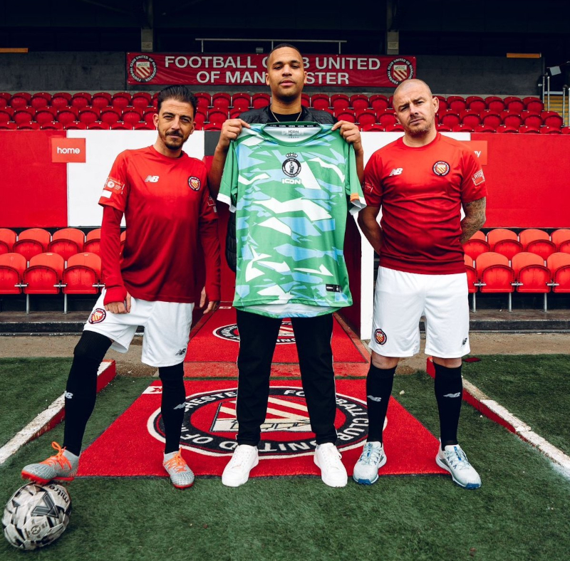 Campaign organiser, local activist and FC United supporter, Lamin Touray (pictured above with FC United legends Carlos Roca and Michael Norton) said: “I’m delighted the Len Johnson celebrity match is back at FC United for a second year running.