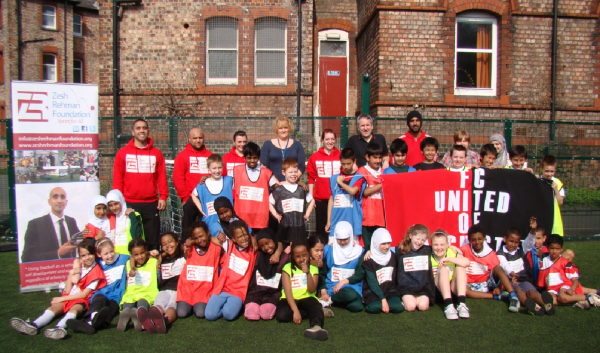 FC United made an alliance with the Zesh Rehman Foundation creating an event which took place on Wednesday 23rd March. This involved children from 3 different primary schools, St Mary’s C of E, St Cuthbert’s RC and Manchester Islamic Preparatory School coming together and working as mixed teams at KD Grammar for Boys, Whalley Range.