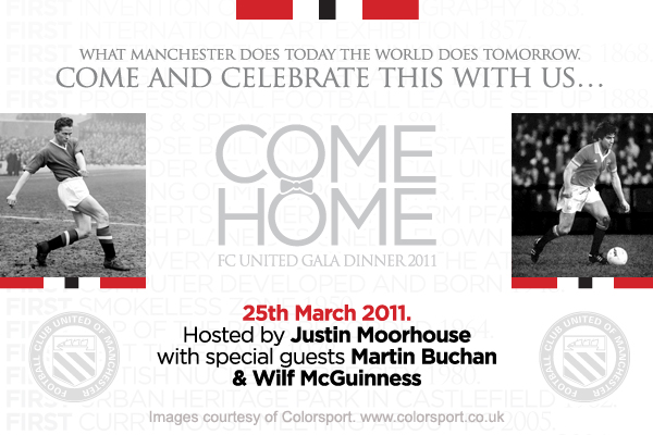 FC United has already been supported by a number of companies and individuals which have purchased tables for this event. They include many of those working with the Club on the Ten Acres Lane project, for which this event is a pivotal fundraiser.