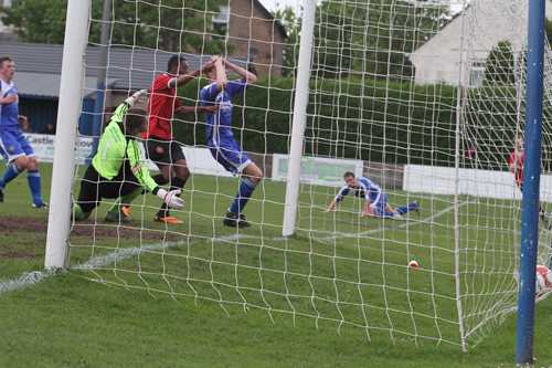 From then on FC had the greater share of possession but the home side were always a danger on swift counter attacking moves. The best of which, on the hour involved Josh Donnelly crossing for Aaron to head goal wards, but this time Chris was up to the task, turning the ball out for a corner.