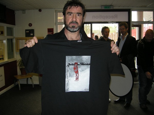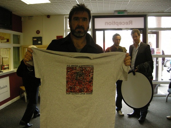 Monsieur Cantona kindly modelled the new t-shirts created to commemmorate our projected move to Ten Acres Lane. They will be available for purchase around the forecourt of Gigg Lane on Wednesday 21st and Saturday 24th April (if there are any left!) and cost a mere tenner each.