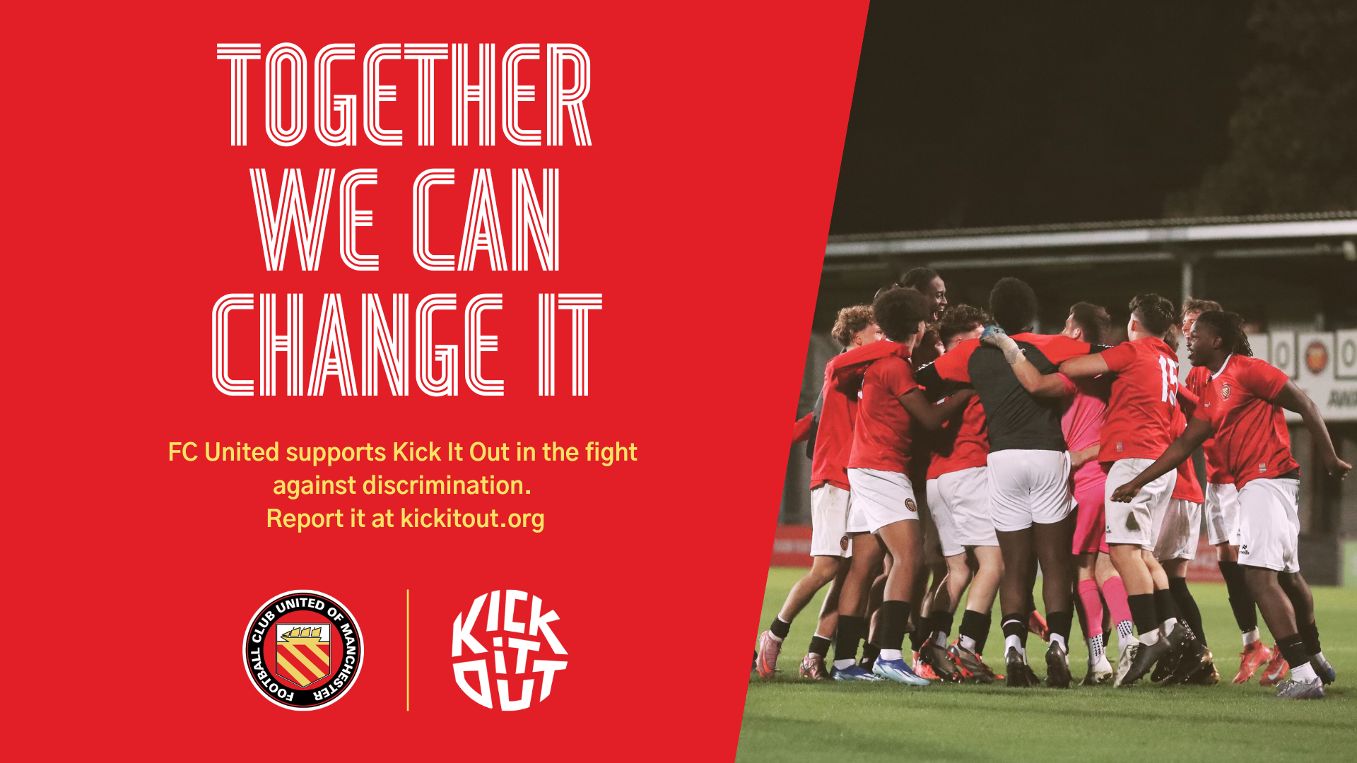 FC is proud to be developing strong links with our local diverse communities in North Manchester. We strive to be accessible to all, discriminating against none, and continually make it clear that there is zero tolerance for such behaviour at our club. With the help of local community organisations including the North Manchester Community Partnership, supporters led by the Community Committee have organised this 'Say No to Racism' event. Warrington Town Club, players and officials have given their support, and both teams will be taking the knee before kick-off, with players wearing Kick It Out t-shirts during the warm-up.