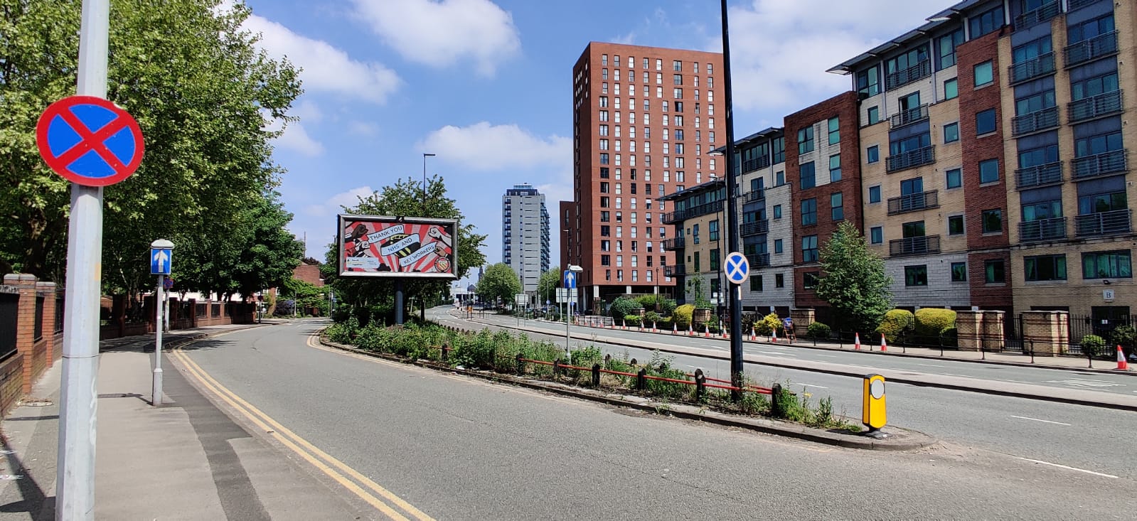 The first advert is on Trinity Way and the junction with Lamb Lane,(M3 6AY) and you can see it here:
