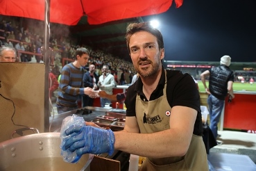 The film crew spent around two hours filming at the ground and filmed James from Fat Annie’s setting up his stand and selling food inside the ground (see photo above) and they also filmed some general shots of people arriving for the game and a couple of shots of the match.