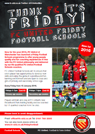 FC United has launched a Friday Football Schools programme to offer young people quality and fun coaching experiences in line with the FC United philosophy and delivered by our FA-qualified FC United Football Schools coaches.