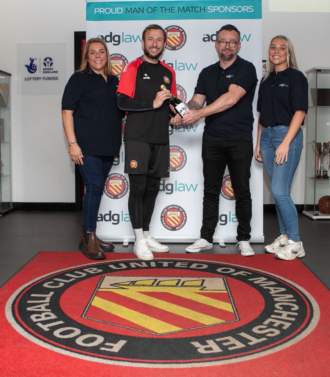 Each Man of the Match winner will be presented with a bottle of champagne post-match, in front of a new co-branded media backdrop featuring both FC United and ADG Law logos. These moments will be shared across the club’s social media channels — reaching nearly one million followers.