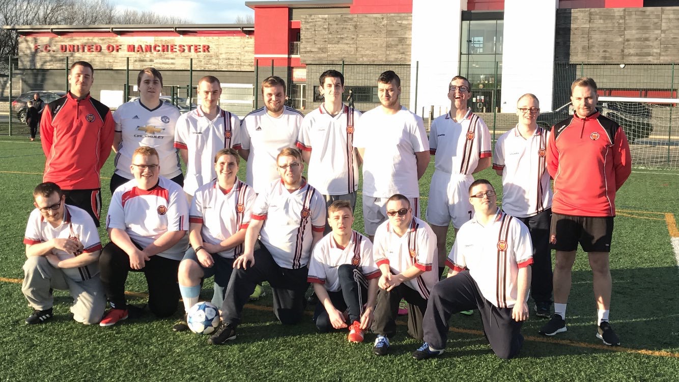 FC United’s Disability Team was set up for 3 months ago under the guidance of Tom Conroy, and meets every Friday evening for training sessions at Broadhurst Park. So far we’ve played just one friendly fixture against Warrington Wolves which was a huge success.