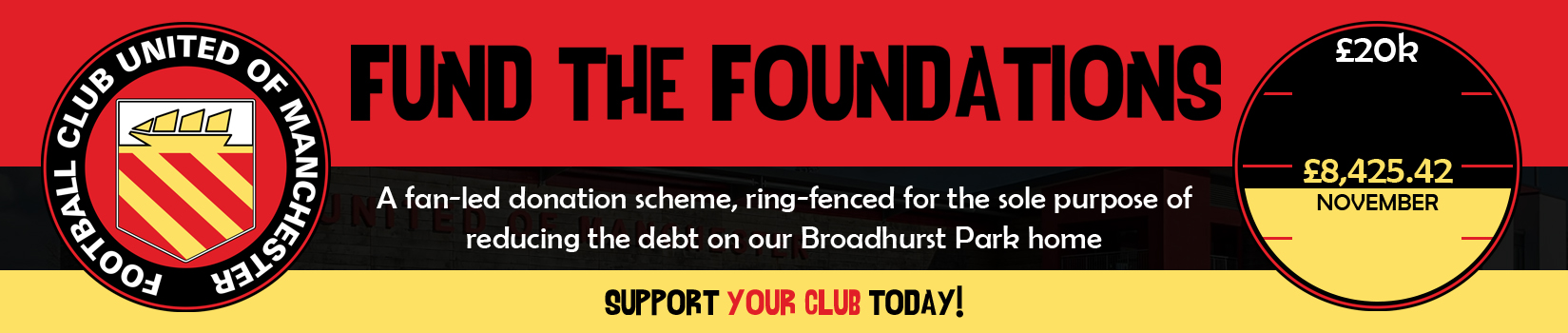 The Fund the Foundations team would like to extend a big thank you to FC United co-owner Dave Smith who’s fundraising efforts have raised a fantastic £1440 to boost the coffers further – this will land into the account in December, meaning we should reach the £10,000 figure by Christmas.