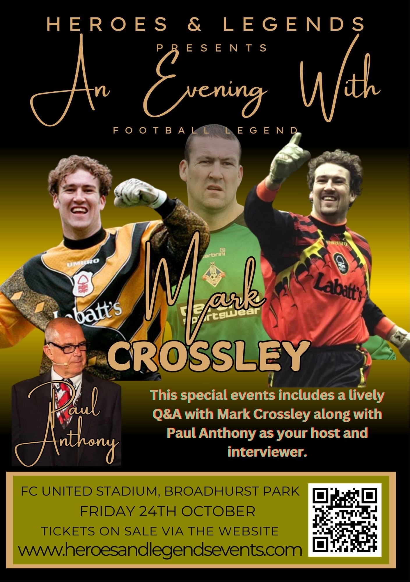 Spend an unforgettable evening with Mark Crossley, hearing the hilarious and untold tales from his time as a Premier League goalkeeper, including legendary Brian Clough stories.