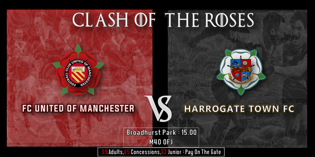 On Saturday 21st January, kick-off 3pm, FC United welcome Harrogate Town to Broadhurst Park in the National League North – Admission is pay on the gate: £9 Adults, £5 Conc, £2 u/18s.