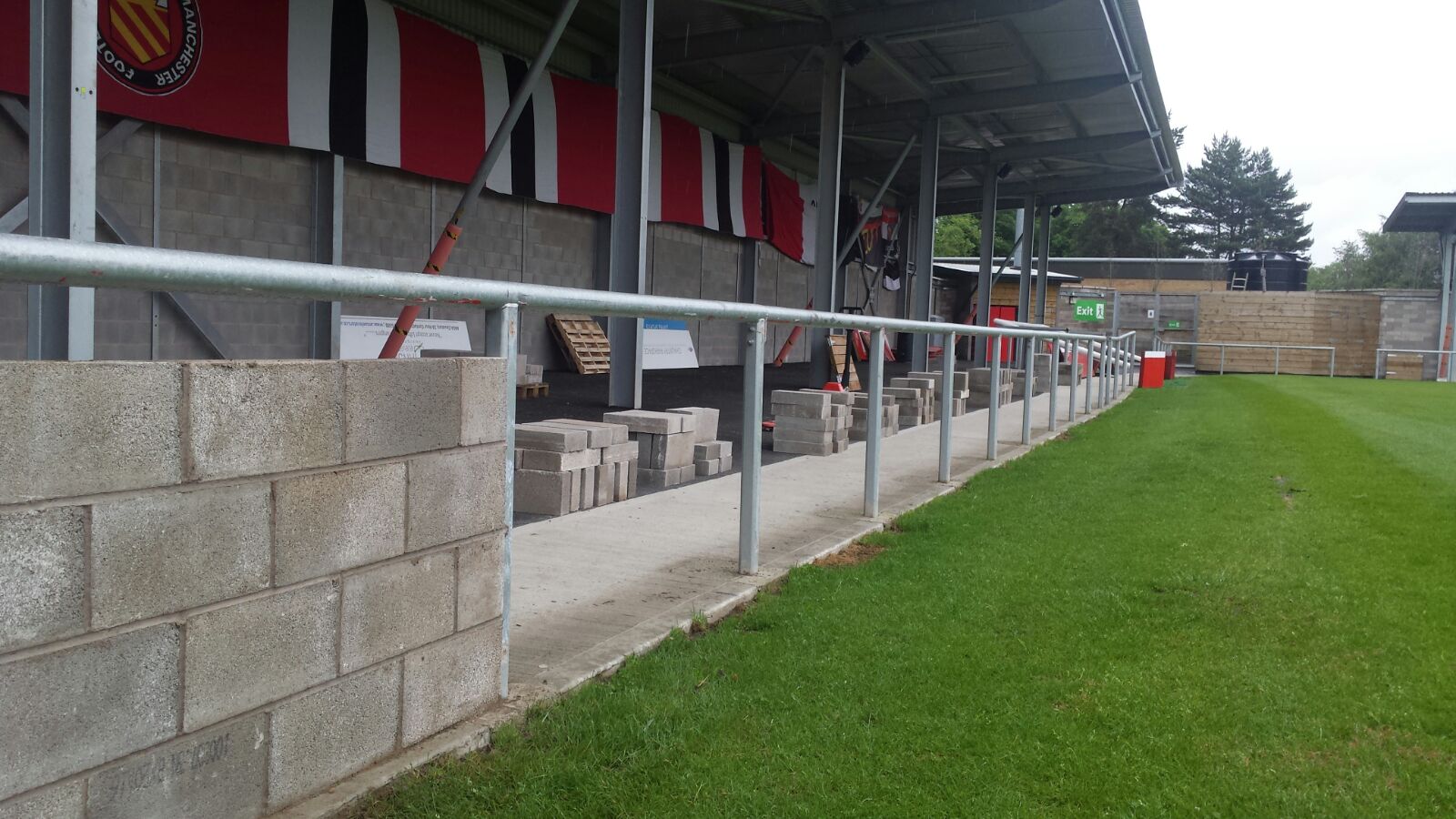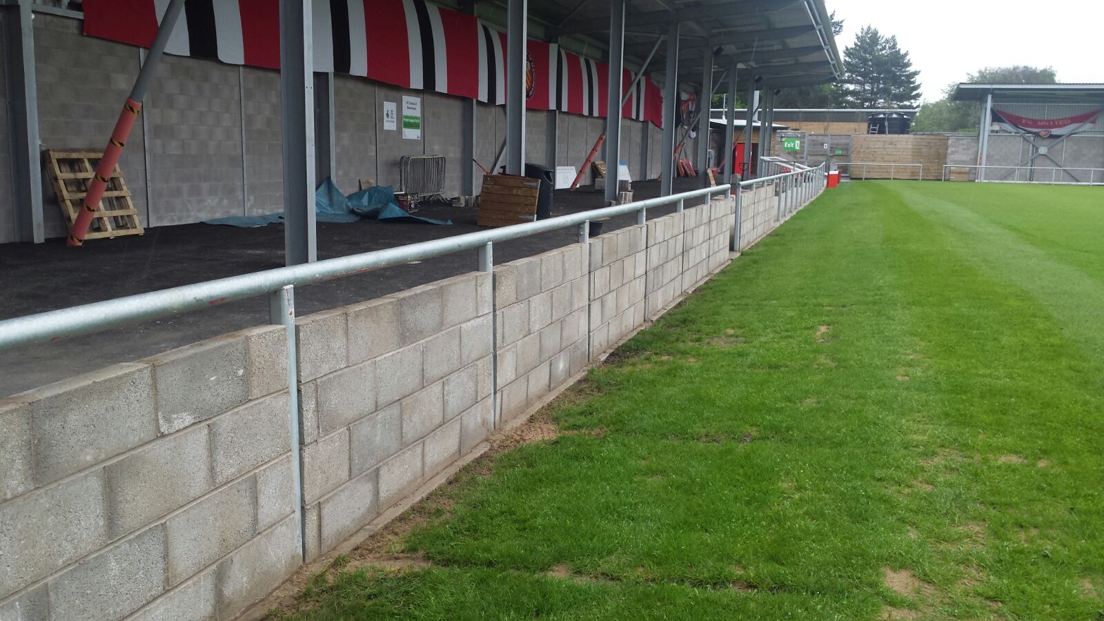 The concrete block wall will provide a strong and lasting base for pitch side advertising hoardings, which have had to be replaced this summer after the battering they’ve taken over the past year from the weather, supporters and balls from the pitch.