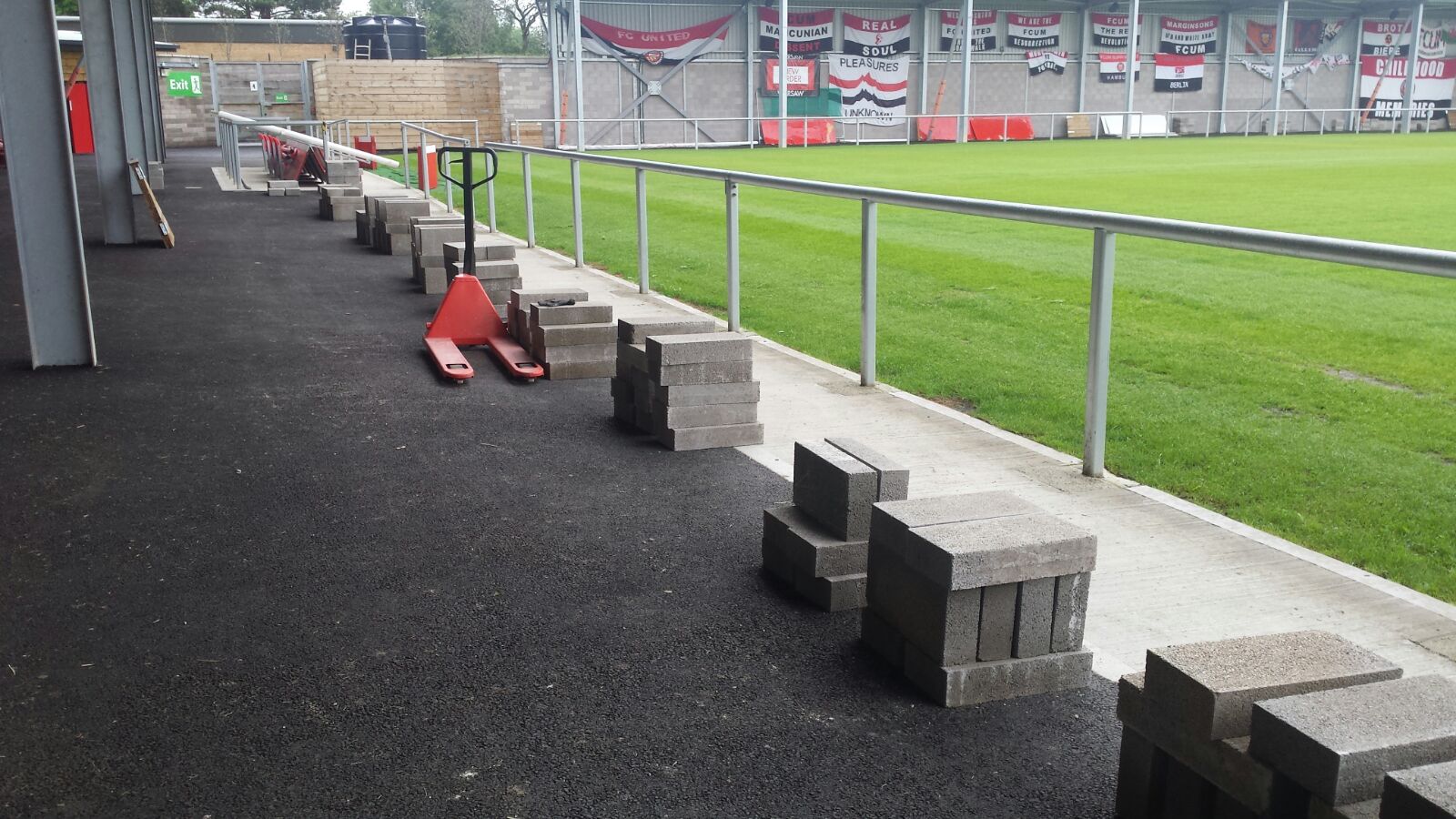 Around 1,300 blocks in total need to be laid across some 167 linear metres, to help ensure the club can stage league fixtures next season - the league will not let us play football on the pitch without the hoardings in place.