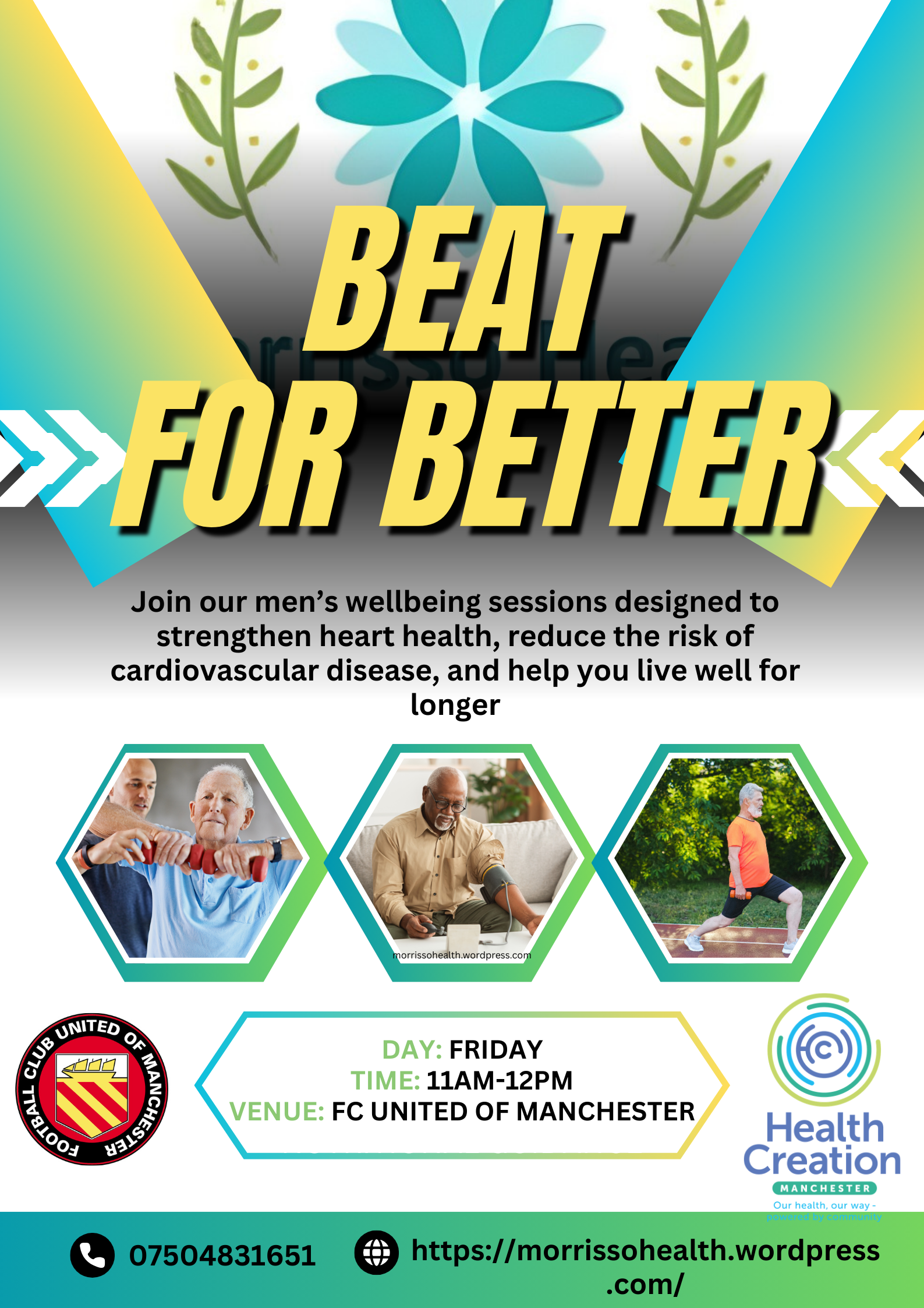 This new initiative forms part of our wider Health Creation Project, which is centred on prevention, connection, and empowering people to take positive steps towards better health. Too often, men face barriers to accessing supportive health spaces, particularly when it comes to cardiovascular health. This bespoke session has been developed to address that gap in a way that feels welcoming, practical, and supportive.