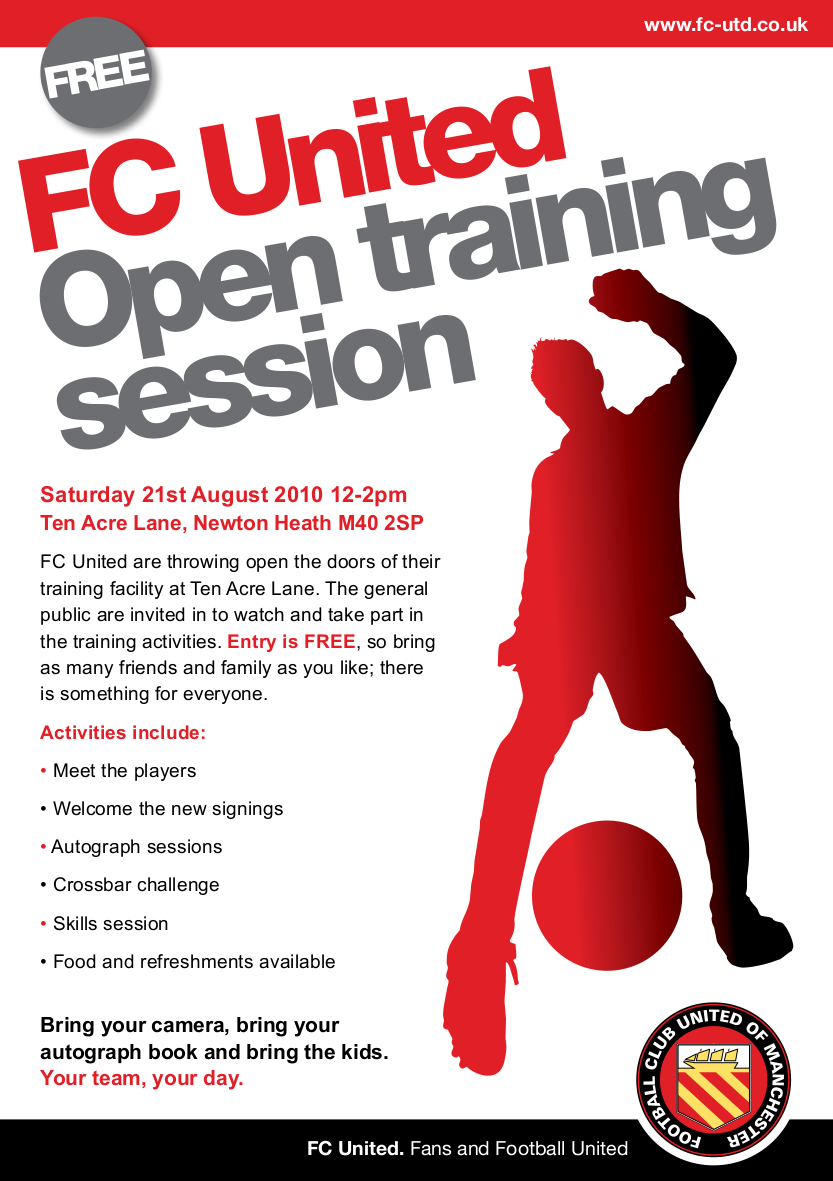 Be one of the first people to see FC United play at Ten Acres Lane when the club hosts an open training session there on Saturday 21st August.