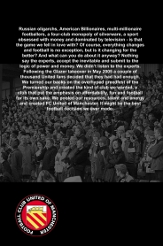 So, in the summer of 2006 it was time to put emotion to one side, think things through and create some order from chaos. So I wrote this book. I wrote a book that would explain what we did and why we did it. I wrote a book that would explain everything that is wonderful about this extraordinary club of ours. I wrote a book that would face up to the issues that confront us - money, merchandising, sponsorship, television - and that would try to arrive at some acceptable solutions. I wrote a book that tried to see ahead to FC’s future and that tried to make clear why FC United is so important for the future of the game we all love.