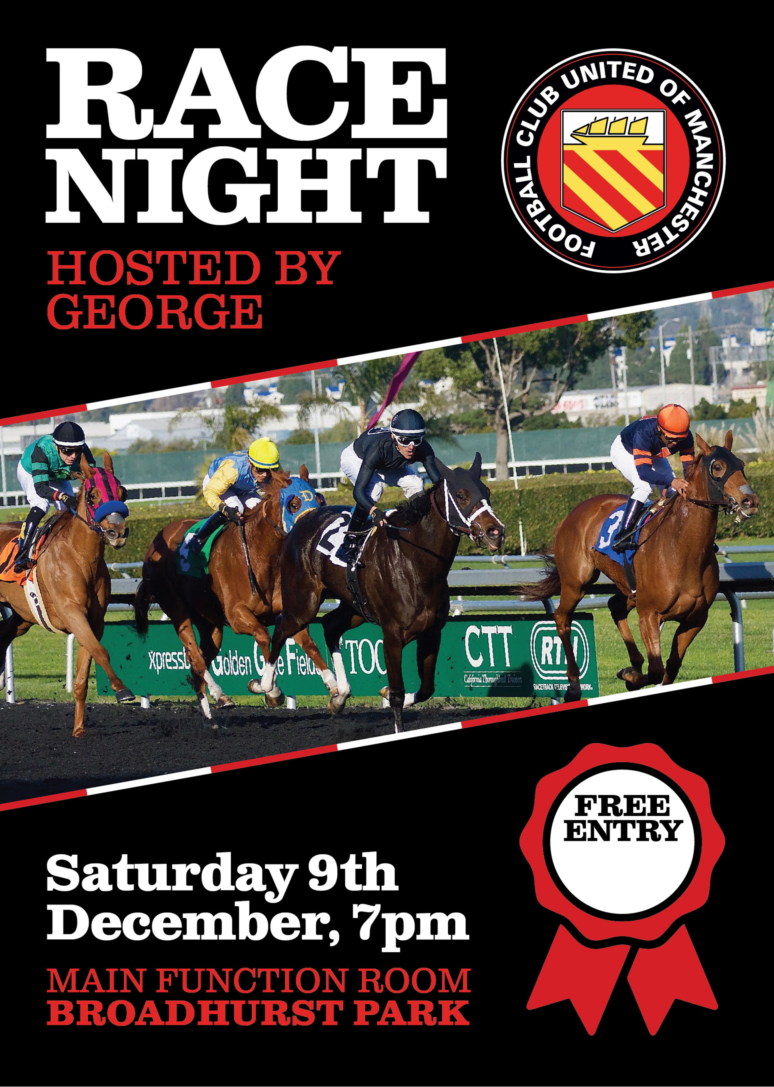 Following our game vs Marine on Saturday 9th December, we will be hosting a Race Night in the main bar. The night will begin at 7pm with all proceeds going to the club!