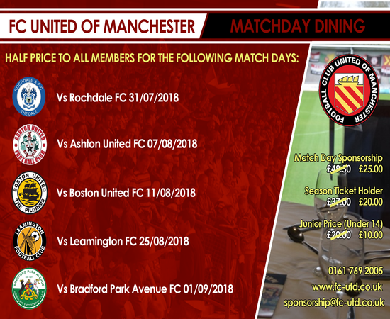To kick off the start of the season we’re offering supporters the chance to come and sample our Match day Dining or sponsor a game at half price.