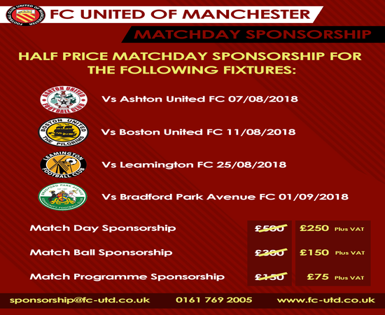 We hope groups of supporters will club together and sponsor a game to help the club further and also encourage current and new sponsors to take advantage of our half price offer.