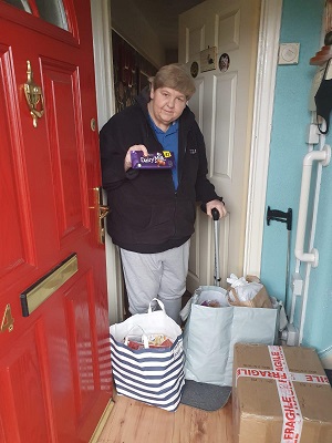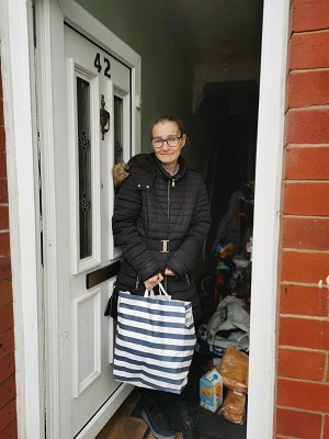 Both players have already offered to volunteer their time at the FoodHub again, and the regular volunteers commented on how well they slotted into the team. The Diwali bags went out with the regular deliveries last week and the extra items were well received by individuals and families. The Diwali Basket Brigade have kindly said that any food and gifts that remain can be used in our Christmas Comforts campaign which will be launched soon. FC United’s food hub extend their gratitude to the Basket Brigade for the incredibly generous donations and are excited for future partnerships with the organisation, who have shown that great things happen when people work together to help other people. Please click here if you are able to help in any way (helping in the hub during the week / cash or food donation etc ) - thank you Pictured are a few of the people we help each week, receiving their Diwali Brigade Gift bags alongside their normal supplies of fresh fruit and veg, meat, bakery, and other provisions we provide thanks to the generosity of the volunteers and all who donate supplies to the FC United FoodHub.